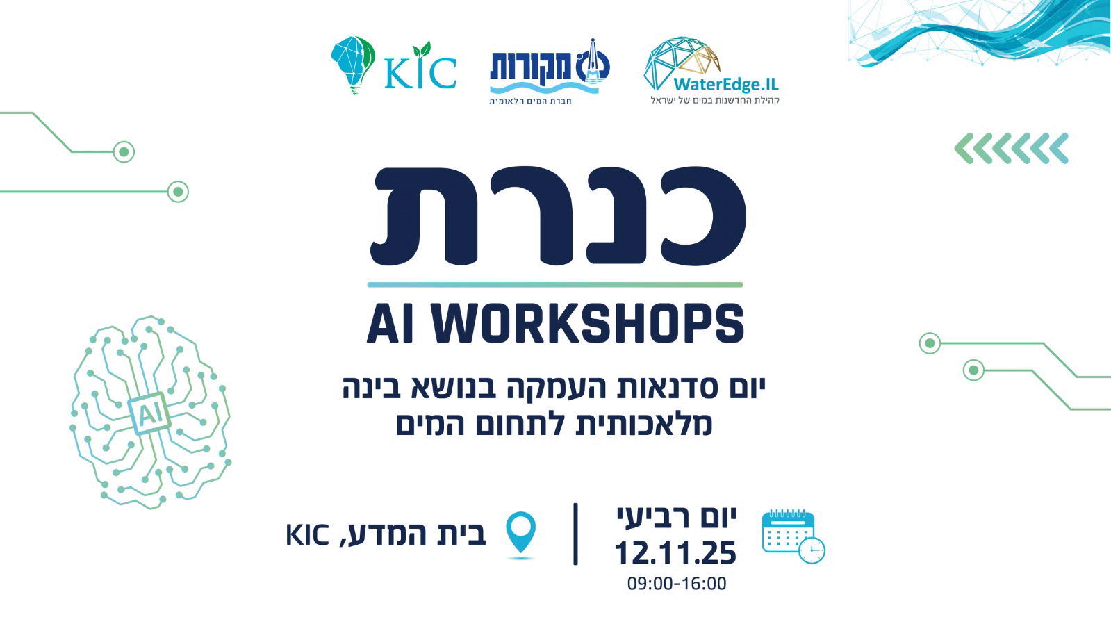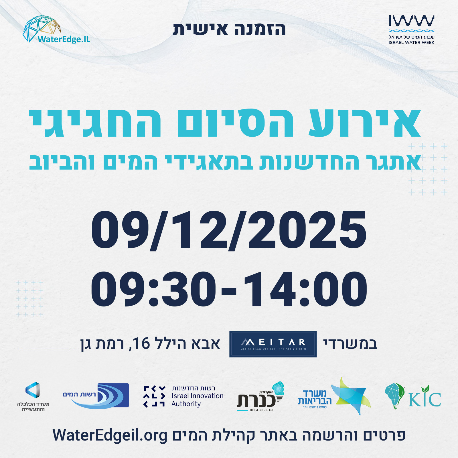 בעשור האחרון עולם המים עובר שינויים חסרי תקדים. בתעשיה שנחשבה “מסורתית" נבנית במהירות קומה נוספת של דאטה, IOT, ובינה מלאכותית. כיום אין חברה, סטאטרטאפ או גוף ציבורי, שלא עוסקים גם בהידרואינפורמטיקה. אנחנו מזמינים אתכם לכנס מקצועי שיעסוק בתפר שבין עולמות המים לעולמות הדיגיטליים. הארוע, שיתקיים בטכניון, יעסוק בהזדמנויות והאתגרים שהחיבור בין התחומים מציב לפתחינו. את הכנס מובילים יחד איתנו קהילת DatA-IL, מרכז חדשנות כנרת, הטכניון, וארגון SWAN הבינלאומי. בואו לשמוע על המחקרים האחרונים בתחום, מקרי בוחן מרתקים של שימוש בכלי תוכנה מתקדמים בתעשיית המים ולהכיר את החברות, הכלים והשיטות שכבר היום מסמנים את העתיד של סקטור המים.